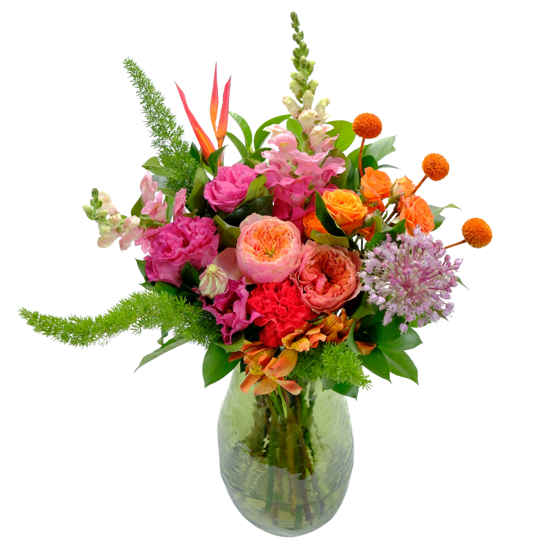 Nossas floristas usam as flores da estação para compor arranjos criativos e originais. Cada composição aqui é única!