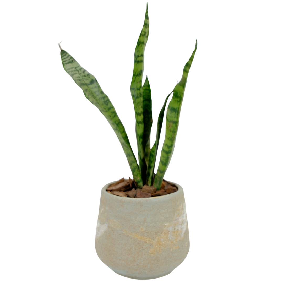 Acompanha um Vaso de cor areia com uma leve textura dourada e branca!